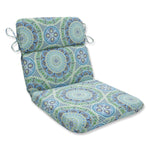 Accent your patio with the intricate, artful elegance of this outdoor chair cushion. Its detailed Suzani print pattern with delicately embellished circles is in enchanting shades of blue, green and yellow set on a white ground. Additional features of this outdoor chair cushion include rounded corners, 14" ties and recycled polyester fill with a sewn seam closure.