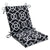 Make a fashion statement on your patio with this elegant black and white outdoor chair cushion. Its gripping white lattice like design has a delicate look and is set on a black ground for a modern effect. Additional features of this outdoor chair cushion include square corners, 14" ties and recycled polyester fill with a sewn seam closure.