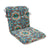 Brighten outdoor living space with this outdoor chair cushion. Its stylized geometric figures in contemporary shapes create a non-directional pattern. Shades of indigo, turquoise, terra-cotta and green make up its eye-catching pattern. Additional features of this outdoor chair cushion include rounded corners, 14" ties and recycled polyester fill with a sewn seam closure.
