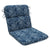 This globally inspired design offers a perfect welcome printed on this outdoor chair cushion. Inspired from block printed designs, the repetitive pattern has petal-like shapes in off-white set against a traditional indigo blue ground, a perfect accent for a cosmopolitan outdoor living space. Made of 100% polyester. Additional features of this outdoor chair cushion include rounded corners, 14" ties and recycled polyester fill with a sewn seam closure.
