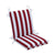 This outdoor chair cushion features a classic cabana stripe. Printed in red and white, the two-inch wide stripes give this pattern a casual feel for any outdoor decor. Additional features of this outdoor chair cushion include square corners, 14" ties and recycled polyester fill with a sewn seam closure.