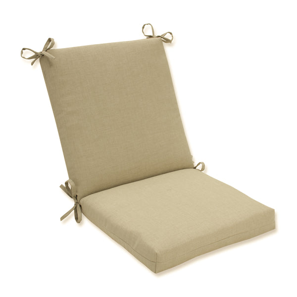 Bring neutral charm and a clean look to your porch or patio with this outdoor chair cushion. In sandy shades of taupe, its linen textured fabric coordinates easily with virtually any color of decor. Additional features of this outdoor chair cushion include square corners, 14" ties and recycled polyester fill with a sewn seam closure.