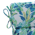 The mystique and beauty of the tropics comes to life with this outdoor chair cushion. Incorporating abstract pineapples and tropical foliage, it is printed in tranquil shades of blue and green with hints of yellow atop a white ground. You'll love creating the look of a tropical paradise in your own backyard. Additional features of this outdoor chair cushion include rounded corners, 14" ties and recycled polyester fill with a sewn seam closure.