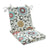 Style blooms with the fun floral pattern of this outdoor chair cushion. Multicolored flowers in shades of blue, gray, orange, tan and red are set on an off-white ground surrounded with curling vines in a shade of dark gray. This versatile pattern easily pairs with light or dark furniture. Additional features of this outdoor chair cushion include square corners, 14" ties and recycled polyester fill with a sewn seam closure.