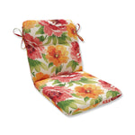 Add ambiance to your porch with the gorgeous flair of this outdoor chair cushion. Its watercolor pattern with large-scale, detailed flowers is in shades of red and orange on an off-white ground. Fabric is durable and fade resistant. Additional features of this outdoor chair cushion include rounded corners, 14" ties and recycled polyester fill with a sewn seam closure.