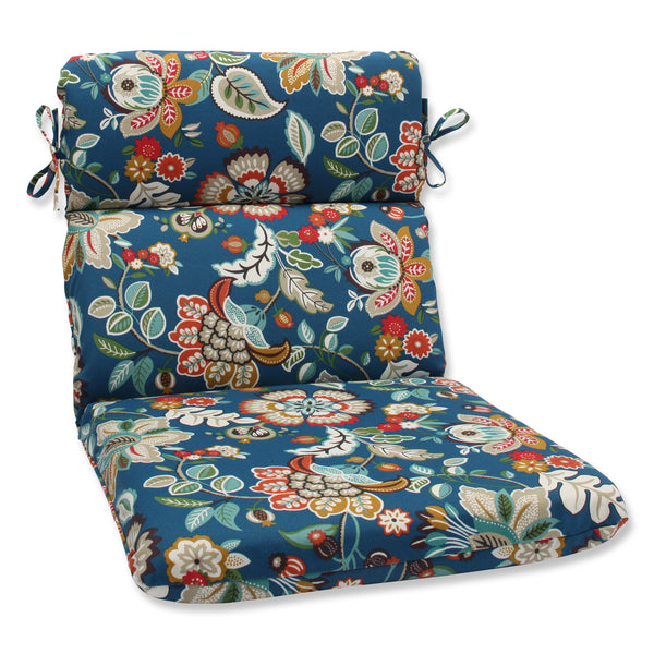 Embellish your porch or patio with the vibrant botanical pattern of this outdoor chair cushion. Flowers and leaves adorn this design in multiple colors on a lovely blue ground. Fabric is durable and fade resistant. Additional features of this outdoor chair cushion include rounded corners, 14" ties and recycled polyester fill with a sewn seam closure.