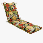 Say "Aloha" to the spirited flowers of Hawaii, which wonderfully blend together in the style of this chaise lounge cushion. Set against a black ground, green, red and maize coordinate beautifully to create a robust floral pattern. Additional features of this outdoor chaise lounge cushion include 14" ties to secure the cushion to your furniture, square corners and recycled polyester fill with a sewn seam closure.