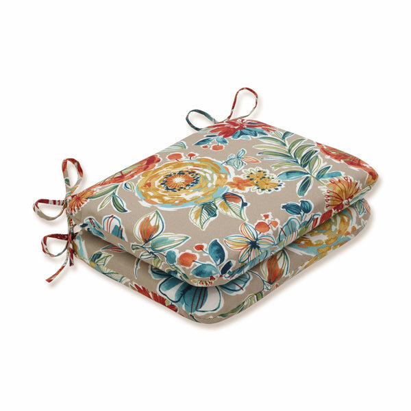 A festival of flowers, foliage and berries brings a style of natural wonder to your outdoor scene with this set of two colorful seat cushions. In a neutral sandy colored backdrop, flowers and berries in a painterely design with white highlights pop in shades of deep red, orange, green and blue, while multicolored leaves enrich the look. Made of 100% polyester. Additional features of these outdoor seat cushions include rounded corners, 14" ties and recycled polyester fill with sewn seam closures. Also suitable for indoor use.