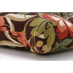 Harmonize your patio with the great outdoors using this outdoor bench cushion. Botanical beauty soothes in shades of green, red and off-white set against a shade of dark brown. Fabric is durable and fade resistant. Features of this outdoor bench cushion include tufted detailing, 14" ties and recycled polyester fiber fill with a sewn seam closure. Also suitable for indoor use.