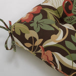Harmonize your patio with the great outdoors using this large outdoor bench cushion. Botanical beauty soothes in shades of green, red and off-white set against a shade of dark brown. Fabric is durable and fade resistant. Features of this large outdoor bench cushion include tufted detailing, 14" ties and recycled polyester fiber fill with a sewn seam closure. Also suitable for indoor use.