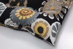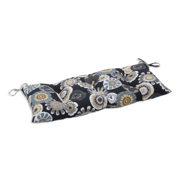 Delight in the painterly beauty of this outdoor tufted bench cushion. A mix of flowers in neutral shades of gold, tan, brown, gray and off-white pop from a classic black ground. Fabric is durable and fade-resistant. Additional features of this outdoor bench cushion include tufted detailing, 14-inch ties and recycled polyester fiber fill with a sewn seam closure. Also suitable for indoor use.