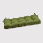 Introduce a gorgeous green on your porch with this versatile outdoor bench cushion. Its solid green pattern easily coordinates with other decor and accents any outdoor area with a fresh, natural look. The durable polyester fabric has a linen-like texture and is fade resistant. Additional features of this outdoor bench cushion include tufted detailing, 14" ties and recycled polyester fiber fill with a sewn seam closure. Also suitable for indoor use.