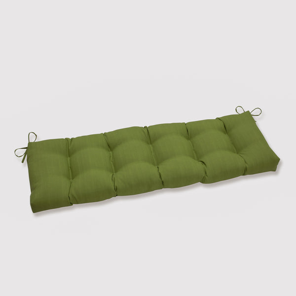 Introduce a gorgeous green on your porch with this versatile large outdoor bench cushion. Its solid green pattern easily coordinates with other decor and accents any outdoor area with a fresh, natural look. The durable polyester fabric has a linen-like texture and is fade resistant. Additional features of this large outdoor bench cushion include tufted detailing, 14" ties and recycled polyester fiber fill with a sewn seam closure. Also suitable for indoor use.