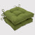 Introduce a gorgeous green on your porch with this set of two versatile large outdoor tufted chair pads. Their solid green pattern easily coordinates with other decor and accents any outdoor area with a fresh, natural look. The durable polyester fabric has a linen-like texture and is fade resistant. Additional features of these large outdoor tufted chair pads include 14" ties to secure the cushions to your furniture and recycled polyester fiber fill with sewn seam closures. Also suitable for indoor use in kitchen and dining areas.