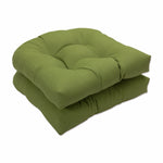 Introduce a gorgeous green on your porch with this set of two versatile outdoor tufted wicker chair cushions. Their solid green pattern easily coordinates with other decor and accents any outdoor area with a fresh, natural look. The durable polyester fabric has a linen-like texture and is fade resistant. Additional features of these outdoor tufted wicker chair cushions include recycled polyester fiber fill and sewn seam closures. Also suitable for indoor use.