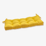 Add a touch of cheery ambiance to any outdoor space with this vibrant yellow outdoor bench cushion. Charming and functional, the polyester fabric is durable and fade resistant. Additional features of this outdoor bench cushion include tufted detailing, 14" ties and recycled polyester fiber fill with a sewn seam closure. Also suitable for indoor use.