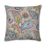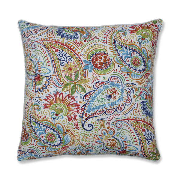 The elegance of this outdoor floor pillow in a lively paisley and floral design is perfect for accenting a patio. Its vivid shades of red, aqua, green, orange, yellow and indigo blue bring life to the scene through artful beauty. Additional features of this outdoor floor pillow include a coordinating white welt cord for a clean finish and recycled polyester fiber fill with a sewn seam closure. Also suitable for indoor use.