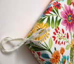 The flower garden print of this outdoor oversized chaise lounge cushion brings a new look to your patio decor. Inspired by a painterly Scandinavian print, flowers dance across the fabric in bright shades of pink, orange, turquoise, yellow and green. Additional features of this outdoor oversized chaise lounge cushion include 14" ties to secure the cushion to your furniture, square corners and recycled polyester fill with a sewn seam closure.