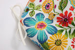 The flower garden print of this set of two large outdoor tufted chair pads brings a new look to your patio decor. Inspired by a painterly Scandinavian print, flowers dance across the fabric in bright shades of pink, orange, turquoise, yellow and green. Additional features of these large outdoor tufted chair pads include 14" ties to secure the cushions to your furniture and recycled polyester fiber fill with sewn seam closures. Also suitable for indoor use in kitchen and dining areas.