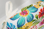 The flower garden print of this set of two outdoor seat cushions brings a new look to your patio decor. Inspired by a painterly Scandinavian print, flowers dance across the fabric in bright shades of pink, orange, turquoise, yellow and green. Additional features of these outdoor seat cushions include rounded corners, 14" ties and recycled polyester fill with sewn seam closures. Also suitable for indoor use.