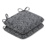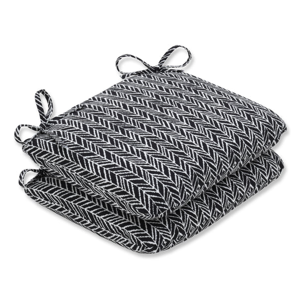 The on-trend appeal of this set of two outdoor seat cushions is ideal for creating a casual outdoor escape. Their eye-catching herringbone pattern is in an off-white set against a black ground, which is perfect for complementing other decor. Additional features of these outdoor seat cushions include rounded corners, 14" ties and recycled polyester fill with sewn seam closures. Also suitable for indoor use.