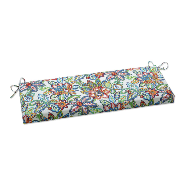 Bringing distinctive color-rich design to patios and porches, this outdoor bench cushion adds bold style with its vibrant floral print. This impeccable design boasts large blooms in vivid shades of red, blue, green, orange and yellow that pop off the off-white ground. Additional features of this outdoor bench cushion include square corners, 14" ties and recycled polyester fill with a zippered closure for easy removal. Also suitable for indoor use.