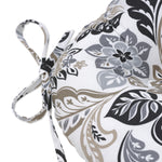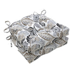 Floral prints never go out of season. This set of two outdoor tufted chair pads is a timeless choice for a fresh, new look outside. In neutral shades of tan, gray and black, this perfectly-sized floral pops against the off-white ground. You'll love the clean look for a casual outdoor setting. Additional features of these outdoor tufted chair pads include 14" ties to secure the cushions to your furniture and recycled polyester fiber fill with sewn seam closures. Also suitable for indoor use in kitchen and dining areas.