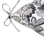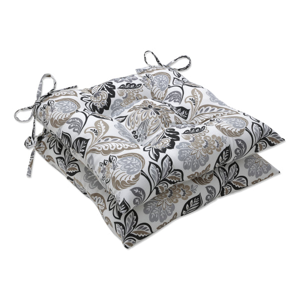 Floral prints never go out of season. This set of two outdoor tufted chair cushions is a timeless choice for a fresh, new look outside. In neutral shades of tan, gray and black, this perfectly-sized floral pops against the off-white ground. You'll love the clean look for a casual outdoor setting. Additional features of these outdoor tufted chair cushions include 14" ties and recycled polyester fiber fill with sewn seam closures. Also suitable for indoor use.