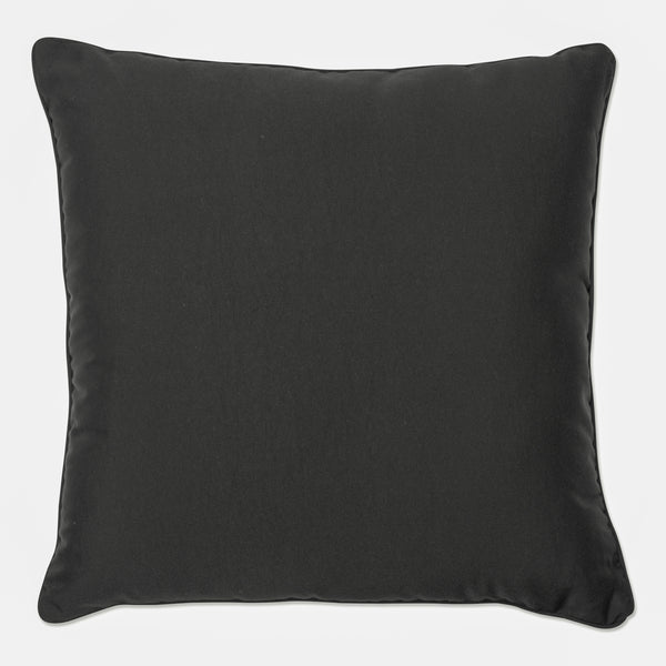Chic and elegant, this outdoor floor pillow makes a perfect decorating accessory for simplicity and comfort. It's in solid black and easily coordinates with any decor. The richly textured polyester fabric is durable and fade-resistant, ideal for a deck or patio. Additional features of this outdoor floor pillow include a self welt cord for a clean finish and recycled polyester fiber fill with a sewn seam closure. Also suitable for indoor use.