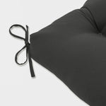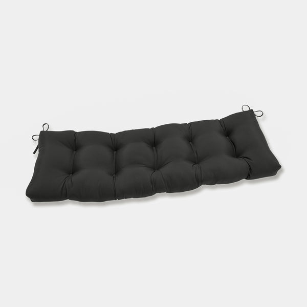 Chic and elegant, this large outdoor bench cushion makes a perfect decorating accessory for simplicity and comfort. It's in solid black and easily coordinates with any decor. The richly textured polyester fabric is durable and fade-resistant, ideal for a deck or patio. Additional features of this large outdoor bench cushion include tufted detailing, 14" ties and recycled polyester fiber fill with a sewn seam closure. Also suitable for indoor use.