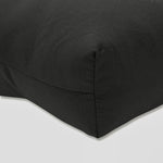 Chic and elegant, this large outdoor bench cushion makes a perfect decorating accessory for simplicity and comfort. It's in solid black and easily coordinates with any decor. The richly textured polyester fabric is durable and fade-resistant, ideal for a deck or patio. Additional features of this large outdoor bench cushion include tufted detailing, 14" ties and recycled polyester fiber fill with a sewn seam closure. Also suitable for indoor use.