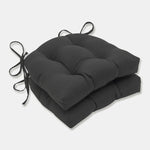 Chic and elegant, this set of two large outdoor tufted chair pads makes a perfect decorating accessory for simplicity and comfort. They're in solid black and easily coordinate with any decor. The richly textured polyester fabric is durable and fade-resistant, ideal for a deck or patio. Additional features of these large outdoor tufted chair pads include 14" ties to secure the cushions to your furniture and recycled polyester fiber fill with sewn seam closures. Also suitable for indoor use in kitchen and dining areas.