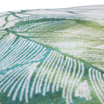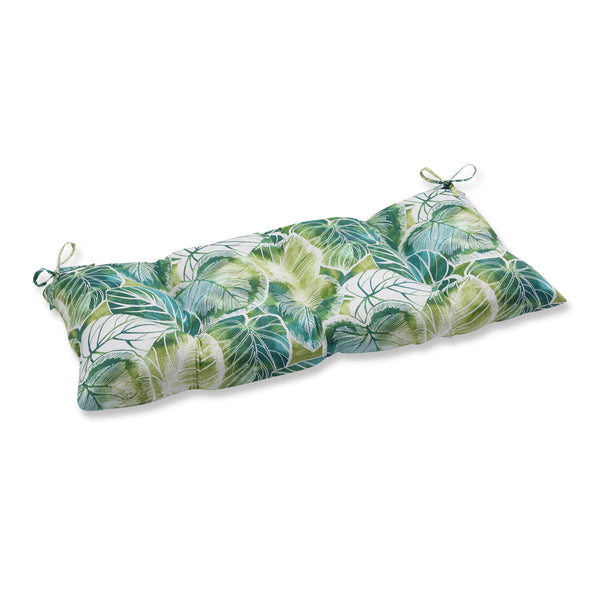 Accent your patio or deck in the gorgeous look of a tropical rainforest with this outdoor bench cushion. Its leafy print pattern, in watercolor shades of green and blue with white outlined leaves, covers the linen textured fabric. Additional features of this outdoor bench cushion include tufted detailing, 14" ties and recycled polyester fiber fill with a sewn seam closure. Also suitable for indoor use.