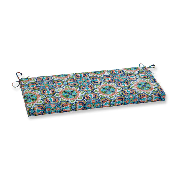 Brighten outdoor living space with this outdoor bench cushion. Its stylized geometric figures in contemporary shapes create a non-directional pattern. Shades of indigo, turquoise, terra-cotta and green make up its eye-catching pattern. Additional features of this outdoor bench cushion include square corners, 14" ties and recycled polyester fill with a zippered closure for easy removal. Also suitable for indoor use.