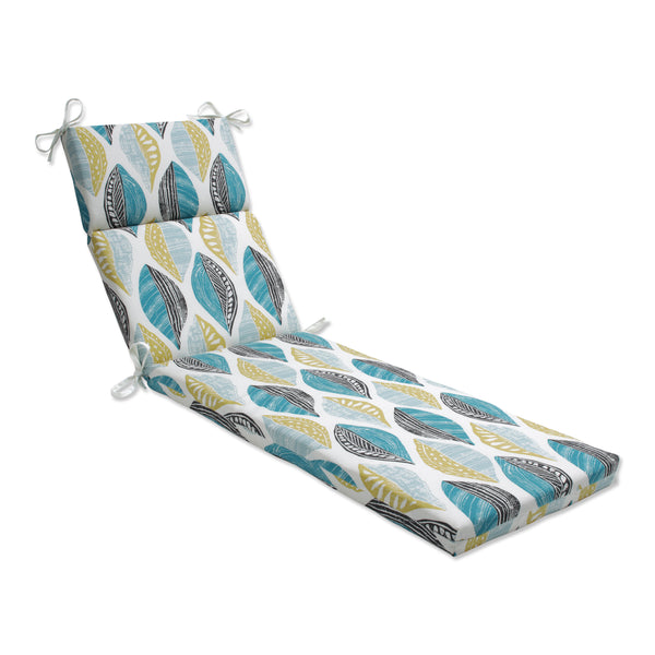 This wood block inspired pattern is designed to modernize any outdoor space with this chaise lounge cushion. Large-scale, abstract leaves colored in shades of teal, spa blue and espresso brown are printed on outdoor fade-resistant polyester fabric that has a slub texture for added dimension. Additional features of this outdoor chaise lounge cushion include 14-inch ties to secure the cushion to your furniture, square corners and recycled polyester fill with a sewn seam closure.