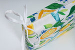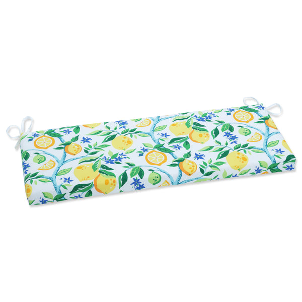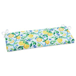The lemon tree pattern of this outdoor bench cushion gives a warm and carefree vibe of summer. Bright yellow lemons with vivid green leaves pop off the crisp, white ground. Additional features of this outdoor bench cushion include square corners, 14" ties and recycled polyester fill with a zippered closure for easy removal. Also suitable for indoor use.