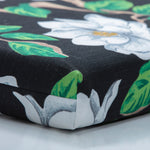 Captivating and sophisticated, this floral outdoor bench cushion will modernize any outdoor or indoor living space. Bold white blooms are a striking contrast against the black ground. The pattern is printed on outdoor fade-resistant polyester fabric that has a slub texture for added dimension. Additional features of this outdoor bench cushion include square corners, 14-inch ties and recycled polyester fill with a zippered closure for easy removal. Also suitable for indoor use.