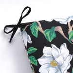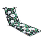 Captivating and sophisticated, this floral outdoor chaise lounge cushion will modernize any outdoor or indoor living space. Bold white blooms are a striking contrast against the black ground. The pattern is printed on outdoor fade-resistant polyester fabric that has a slub texture for added dimension. Additional features of this outdoor chaise lounge cushion include 14-inch ties to secure the cushion to your furniture, square corners and recycled polyester fill with a sewn seam closure.
