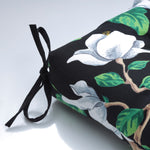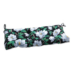 Captivating and sophisticated, this floral outdoor bench cushion will modernize any outdoor or indoor living space. Bold white blooms are a striking contrast against the black ground. The pattern is printed on outdoor fade-resistant polyester fabric that has a slub texture for added dimension. Additional features of this outdoor bench cushion include tufted detailing, 14-inch ties and recycled polyester fiber fill with a sewn seam closure. Also suitable for indoor use.