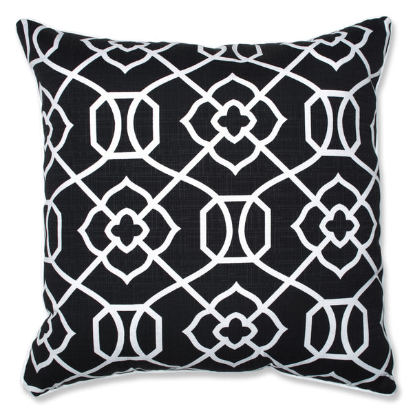 Make a fashion statement on your patio with this elegant black and white outdoor floor pillow. Its gripping white lattice like design has a delicate look and is set on a black ground for a modern effect. Additional features of this outdoor floor pillow include a white coordinating welt cord for a clean finish and recycled polyester fiber fill with a sewn seam closure. Also suitable for indoor use.