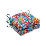 Colors rain down in modern splendor with this set of two irresistible outdoor tufted chair pads. Inspired by raindrops, their painterly pattern is in brilliant shades of pink, aqua, yellow, green, blue and red set on a white ground. Additional features of these outdoor tufted chair pads include 14" ties to secure the cushions to your furniture and recycled polyester fiber fill with sewn seam closures. Also suitable for indoor use in kitchen and dining areas.