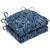 This globally inspired design offers a perfect welcome printed on this set of two large outdoor tufted chair pads. Inspired from block printed designs, the repetitive pattern has petal-like shapes in off-white set against a traditional indigo blue ground, a perfect accent for a cosmopolitan outdoor living space. Made of 100% polyester. Additional features of these large outdoor tufted chair pads include 14" ties to secure the cushions to your furniture and recycled polyester fiber fill with sewn seam closures. Also suitable for indoor use in kitchen and dining areas.