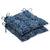 This globally inspired design offers a perfect welcome printed on this set of two outdoor tufted chair cushions. Inspired from block printed designs, the repetitive pattern has petal-like shapes in off-white set against a traditional indigo blue ground, a perfect accent for a cosmopolitan outdoor living space. Made of 100% polyester. Additional features of these outdoor tufted chair cushions include 14" ties and recycled polyester fiber fill with sewn seam closures. Also suitable for indoor use.