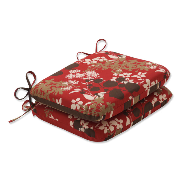 Modern stripes and elegant florals of this set of two outdoor seat cushions make the reversible patterns memorable accents for any home or patio decor. Chic brown, tan and red add a contemporary twist to these patterns and bring a warm look. Additional features of these outdoor seat cushions include rounded corners, 14" ties and recycled polyester fill with sewn seam closures. Also suitable for indoor use.