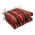 Accent your porch or patio with the modern vibe of this set of two striped large outdoor tufted chair pads. Their pattern has various widths of stripes in shades of red, brown and tan to create a handsome style. Fabric is durable and fade resistant. Additional features of these large outdoor tufted chair pads include 14" ties to secure the cushions to your furniture and recycled polyester fiber fill with sewn seam closures. Also suitable for indoor use in kitchen and dining areas.