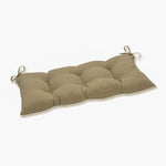 Neutral and simply luxurious, this outdoor bench cushion makes any outdoor space inviting. Its solid tan textured polyester fabric is durable and fade resistant, perfect for accenting decks and patios. Additional features of this outdoor bench cushion include tufted detailing, 14" ties and recycled polyester fiber fill with a sewn seam closure. Also suitable for indoor use.
