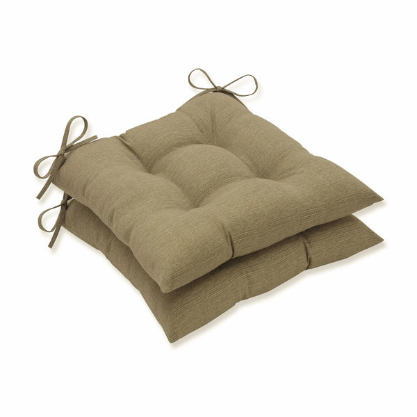 Neutral and simply luxurious, this set of two outdoor tufted chair cushions makes any outdoor space inviting. Their solid tan textured polyester fabric is durable and fade resistant, perfect for accenting decks and patios. Additional features of these outdoor tufted chair cushions include 14" ties and recycled polyester fiber fill with sewn seam closures. Also suitable for indoor use.