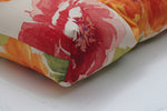 Add ambiance to your porch with the gorgeous flair of this outdoor bench cushion. Its watercolor pattern with large-scale, detailed flowers is in shades of red and orange on an off-white ground. Fabric is durable and fade resistant. Additional features of this outdoor bench cushion include tufted detailing, 14" ties and recycled polyester fiber fill with a sewn seam closure. Also suitable for indoor use.