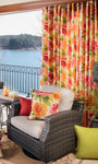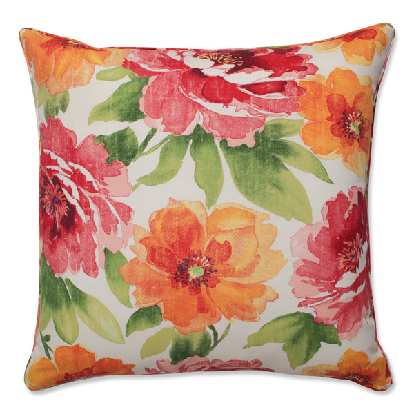 Add ambiance to your porch with the gorgeous flair of this outdoor floor pillow. Its watercolor pattern with large-scale, detailed flowers is in shades of red and orange on an off-white ground. Fabric is durable and fade resistant. Additional features of this outdoor floor pillow include a self welt cord for a clean finish and recycled polyester fiber fill with a sewn seam closure. Also suitable for indoor use.