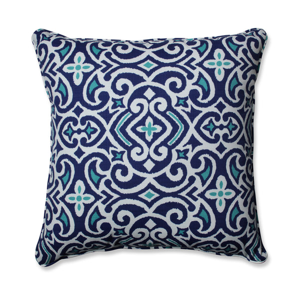 Modern flair and the elegance of this outdoor floor pillow set the scene for cheer in any outdoor setting. In bright shades of cobalt blue and turquoise, its damask pattern is accented with flowers, diamonds and fleur-de-lis. Additional features of this outdoor floor pillow include a self welt cord for a clean finish and recycled polyester fiber fill with a sewn seam closure. Also suitable for indoor use.